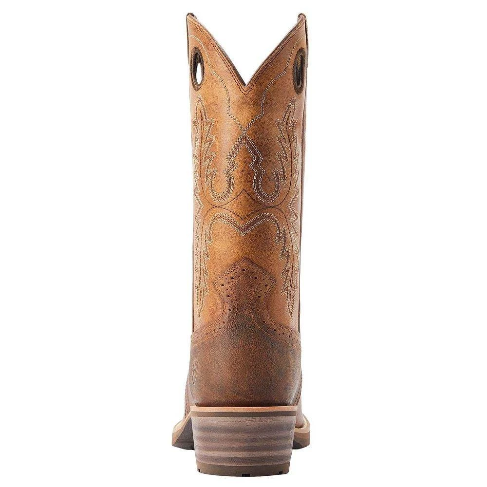 Ariat Roughstock Sorrel Crunch boots are a classic cowboy style featuring durability and comfort.