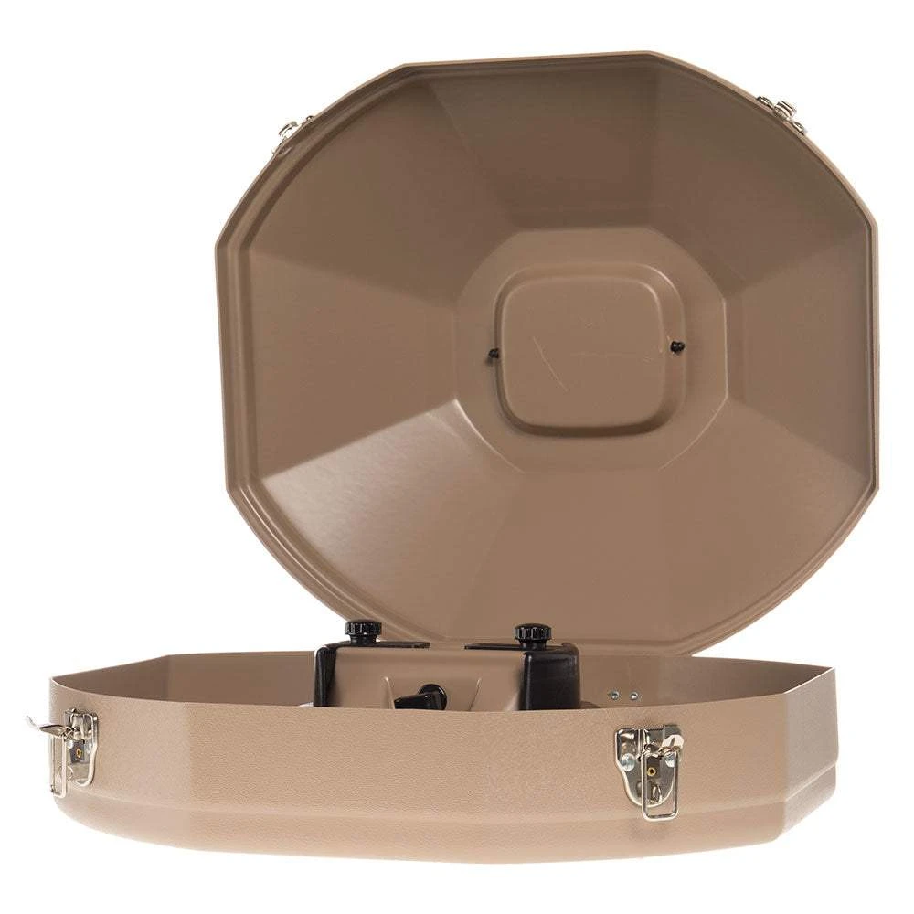 Keep your felt hat protected while traveling with these stackable hat cans from Formco. Carry multiple hats by locking 2 or more cans together. Fits 4 1/4″ brim hats (will fit 4 1/2″ brims smaller than size 7 1/8). Made with thermoformed ABS plastic and high quality metal hinges, latches, and rivets. Brim rest is adjustable to fit any size hat down to 6 3/8.